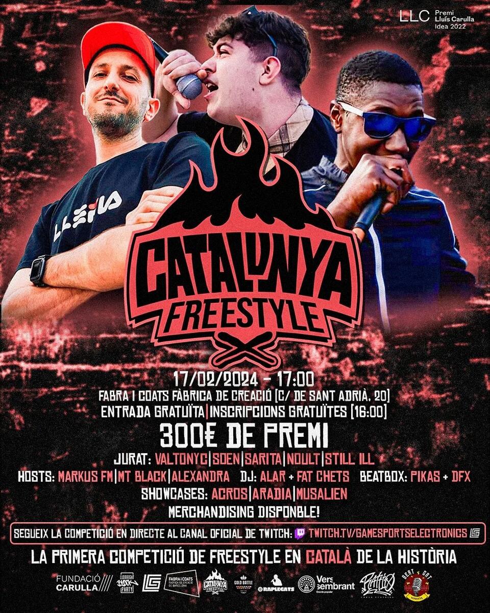 Cartell definitiu amb tot el que passarà aquest dissabte a @fabraicoats.fabricadecreacio 🔥🔥 Afegim novetat al cartell i és que tindrem 3 concerts per part de @acros_vsc , @aradiadenit @musalienn ⚠️ Recordeu que les inscripcions són a les 16 h al mateix lloc i tant la inscripció com l'entrada són gratuïtes⚠️. ⚠️ INICI 17:00⚠️ 🏆PREMI 300€ + TROFEU 🏆 Aquest esdeveniment ha sigut possible gràcies a: @goldbattleoficial @raplegats @llobregatblockparty @fundaciocarulla @fabraicoats.fabricadecreacio @versembrant @gamesportselectronics @rattio_merch @beatcatofficial #freestyle #catalunya #català #rap #hiphop #fabraicoats #freestylerap #batalla #freestyleencatala