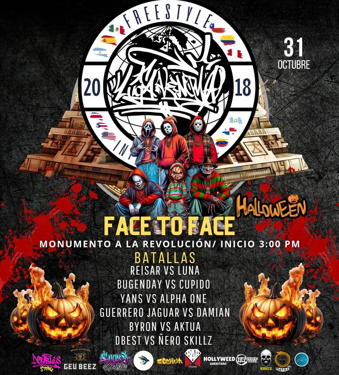 Este jueves volvemos a la plaza con FACE TO FACE edición halloween, asiste y apoya a tu Freestyler favorito, será un gran día lleno de Punch lines, te esperamos!!! #FreestyleMexicano #FacetoFace #LaligadeMex