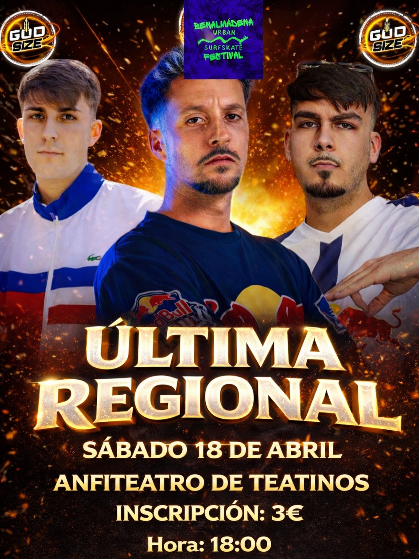 ÚLTIMA REGIONAL Última oportunidad para clasificar a la final del Godsize Fest , nos vemos este sábado 18 de abril en el Anfiteatro de Teatinos para definir el último cupo 🔜🔜🔜 *Solo el ganador clasificará al Godsize Fest