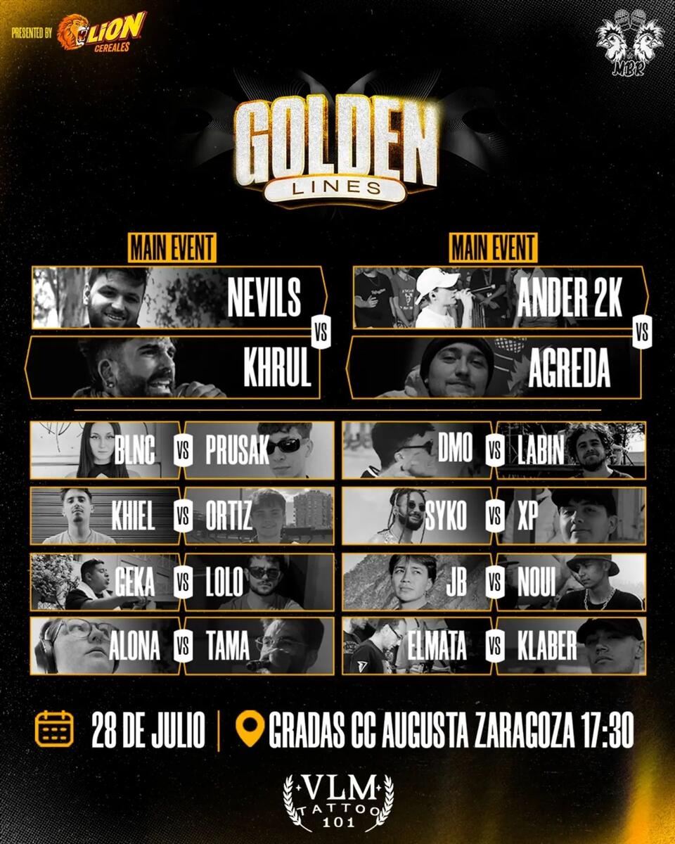 ¡G O L D E N L I N E S R A P I D E D I T I O N 🩸 Prepárate para una jornada de batallas escritas que no te puedes perder con 10 batallones escritos. Ven a las gradas del Centro Comercial Augusta a las 17:30 y vive la emoción de los enfrentamientos a 3 rounds de 90 segundos cada uno. Los participantes tendrán que tirar sus rounds de memoria, ¡así que nada de mirar el móvil! 📵 Si no te acuerdas, el round se da por cerrado. 😱 La única batalla en formato clásico será el BLNC VS Prusak aplazado de la anterior jornada. Además, disfrutaremos de los showcases de la Jujas Quarry y Perropeligro. 🎤🎶 Además nos hace mucha ilusión anunciar que estaremos contando con @vlmtattoo como sponsor del evento. Marca la fecha en tu calendario y no faltes. ¡Te esperamos para reventar esta primera edición de Golden Lines Rapid Edition! 🔥💥 . . . . #GoldenLines #BatallasEscritas #Zaragoza #CentroComercialAugusta #miraelbuenrap #rap #freestyle