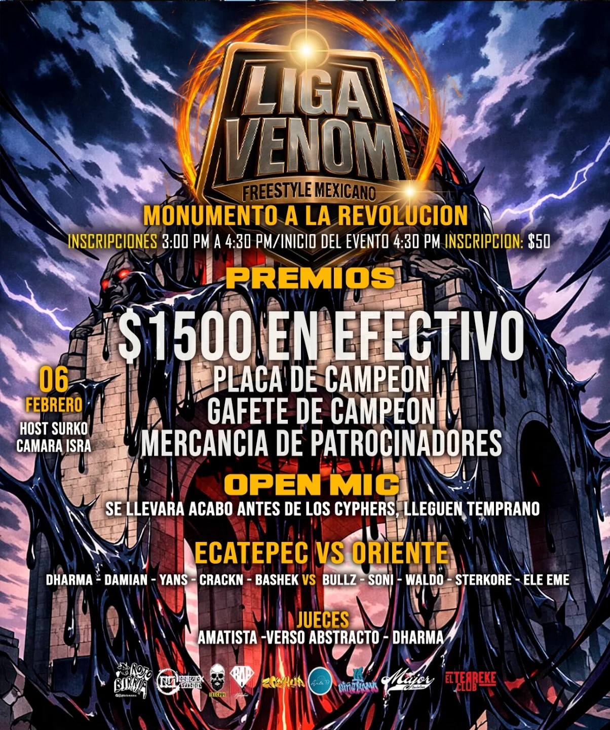 Este viernes volvemos al Monumento a la revolución para otra fecha llena de grandes batallas!!! Tendremos OPEN MIC, Batalla de Exhibición y el torneo clásico, los esperamos, todos pueden participar!!! #ligavenom #FreestyleMexicano #LaligadeMex