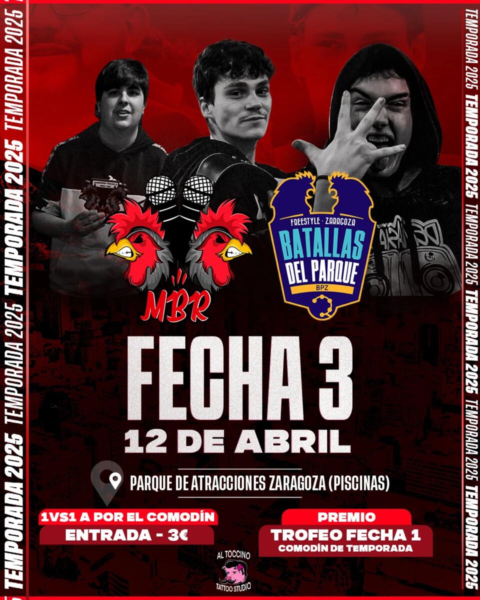 FECHA 3 DE MIRAELBUENRAP BPZ ESTE SÁBADO A LAS 17:00 EN LAS PISCINAS DEL PARQUE DE ATRACCIONES DE ZARAGOZA El campeón contará con un comodín que podrá usar en cualquier ronda de cualquiera de las 5 fechas restantes 😍 Entrada/Inscripción: 3€ . . . #miraelbuenrap #miraelbuenrapt8
